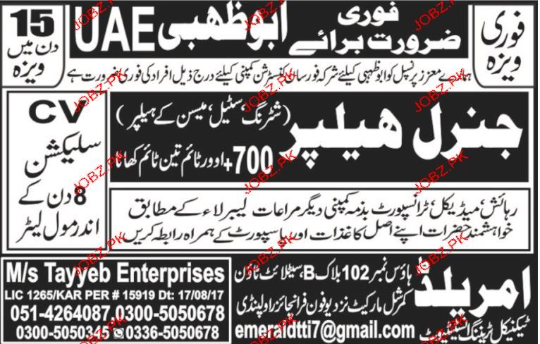 Latest Emerald Technical Training Institute Labor Posts UAE 2025