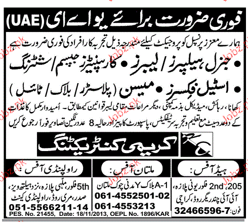 General Helpers, Labors, Shuttering Carpenters Wanted