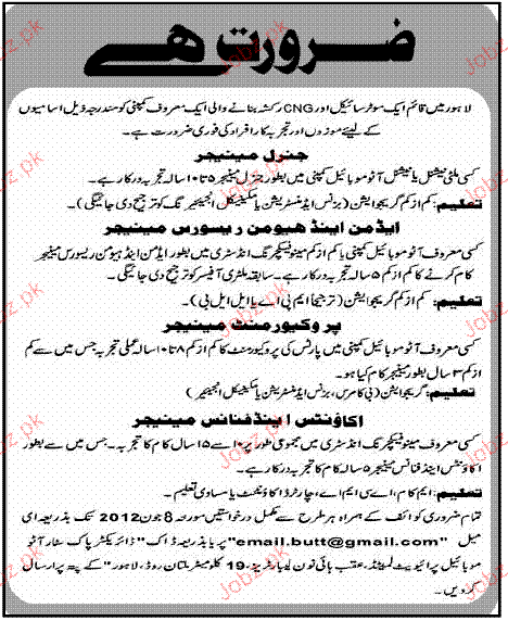 Apply as per details in job advertisement. Login to view further details of how to apply via https://www.jobz.pk online.