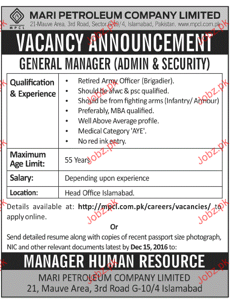 Apply as per details in job advertisement. Login to view further details of how to apply via https://www.jobz.pk online.