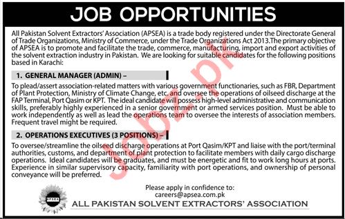 Vacancies in All Pakistan Solvent Extractors Association APSEA Advertisement October 2018