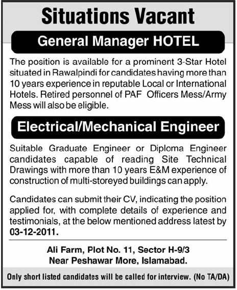 General Manager And Mechanical Engineer Job Opportunity