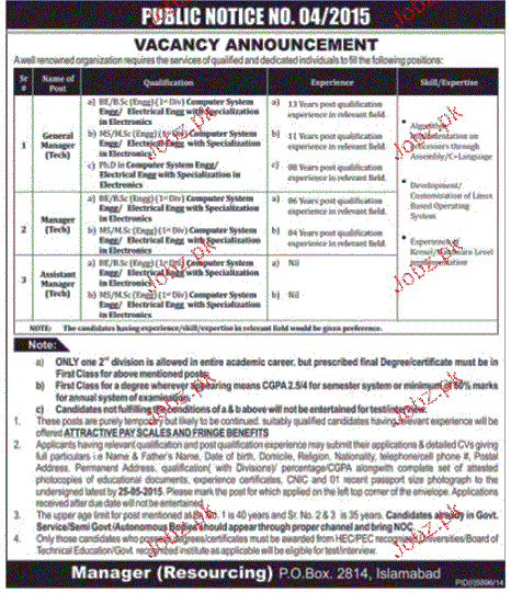 Apply as per details in job advertisement. Login to view further details of how to apply via https://www.jobz.pk online.