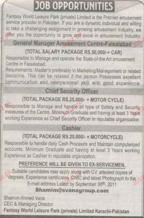 Apply as per details in job advertisement. Login to view further details of how to apply via https://www.jobz.pk online.