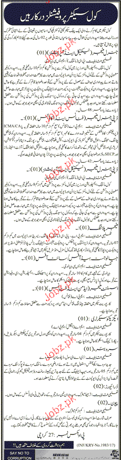 Apply as per details in job advertisement. Login to view further details of how to apply via https://www.jobz.pk online.