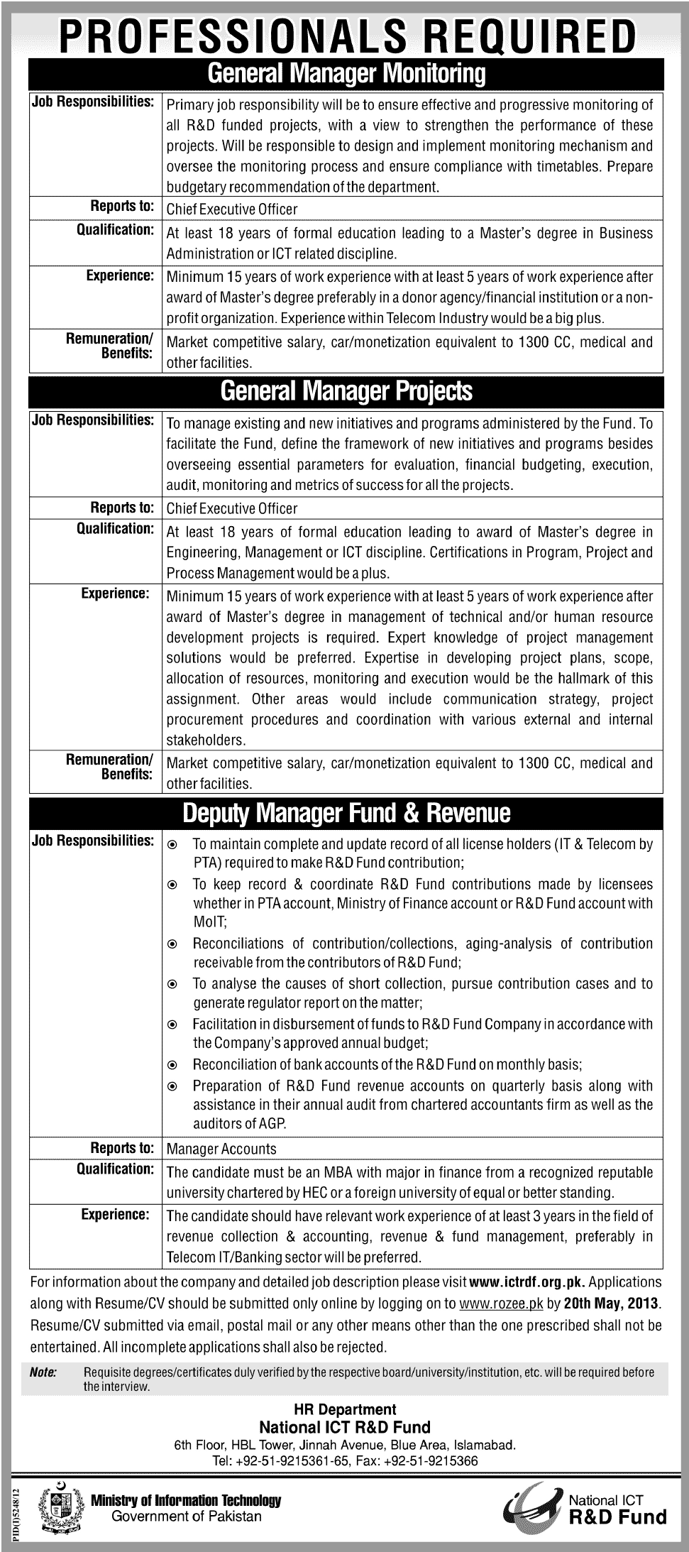 Apply as per details in job advertisement. Login to view further details of how to apply via https://www.jobz.pk online.