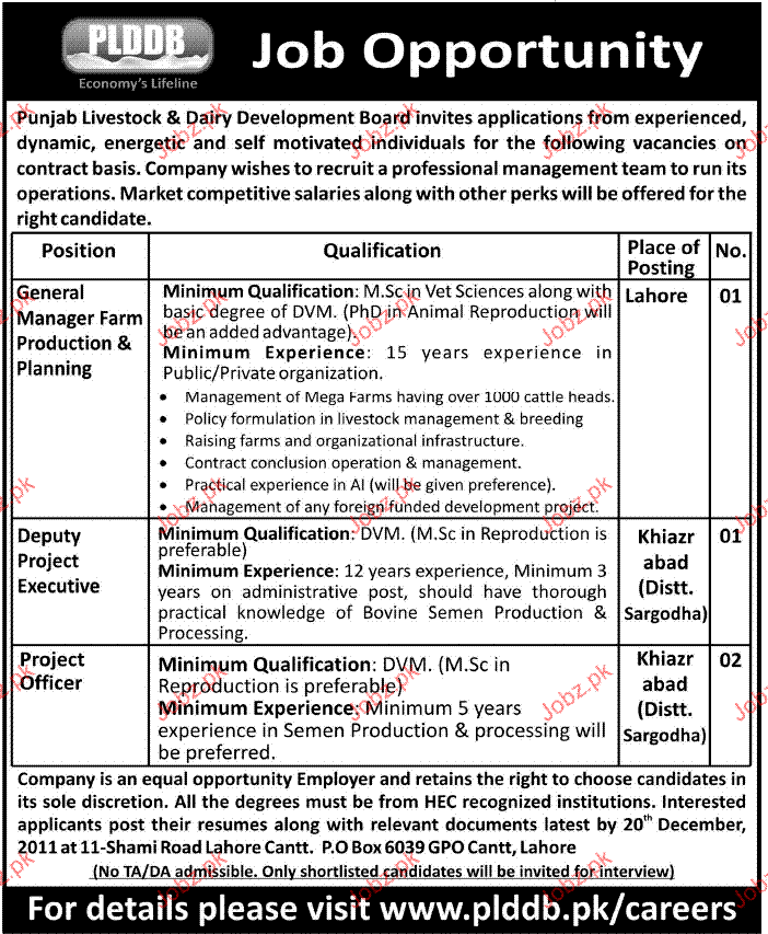 Apply as per details in job advertisement. Login to view further details of how to apply via https://www.jobz.pk online.