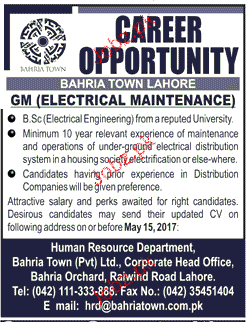 General Manager Electrical Maintenance Job Opportunity