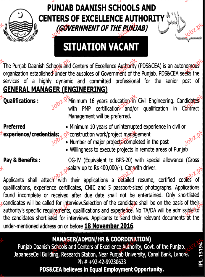 Apply as per details in job advertisement. Login to view further details of how to apply via https://www.jobz.pk online.