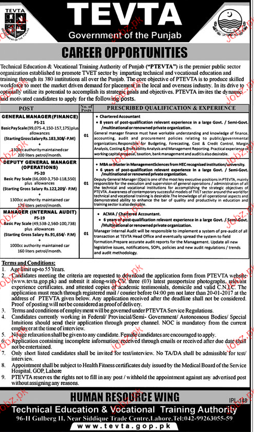 Latest Technical Education and Vocational Training Authority TEVTA Management Posts Lahore 2025