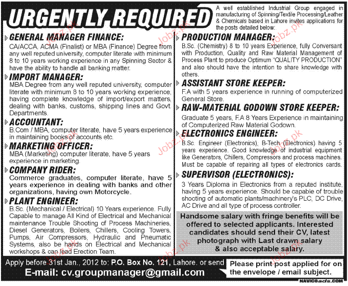 Apply as per details in job advertisement. Login to view further details of how to apply via https://www.jobz.pk online.