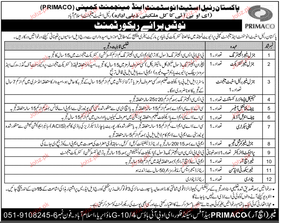 Apply as per details in job advertisement. Login to view further details of how to apply via https://www.jobz.pk online.