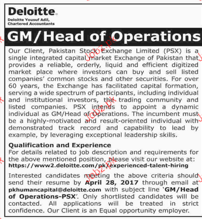 Apply as per details in job advertisement. Login to view further details of how to apply via https://www.jobz.pk online.