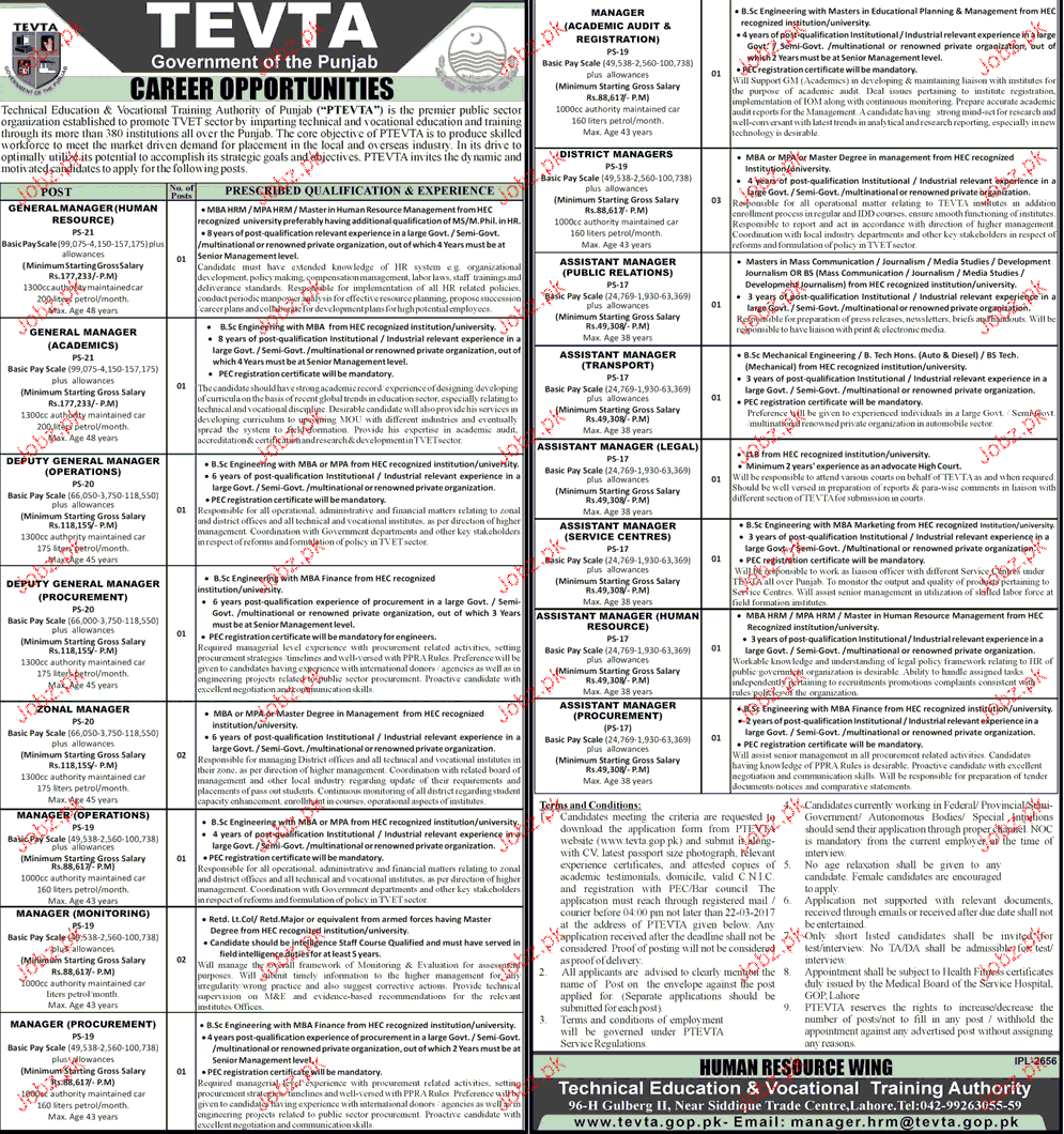 Latest Technical Education and Vocational Training Authority TEVTA Management Posts Lahore 2025