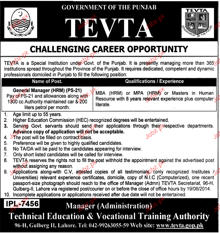Latest Technical Education and Vocational Training Authority TEVTA Management Posts Lahore 2025