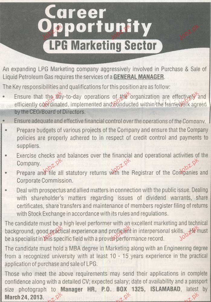 Apply as per details in job advertisement. Login to view further details of how to apply via https://www.jobz.pk online.