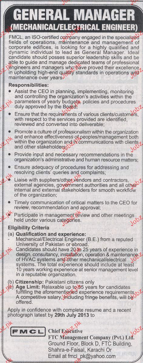 Apply as per details in job advertisement. Login to view further details of how to apply via https://www.jobz.pk online.