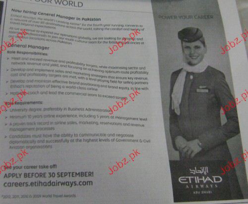 Apply as per details in job advertisement. Login to view further details of how to apply via https://www.jobz.pk online.