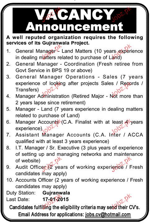 Latest Private Company Management Posts Gujranwala 2025
