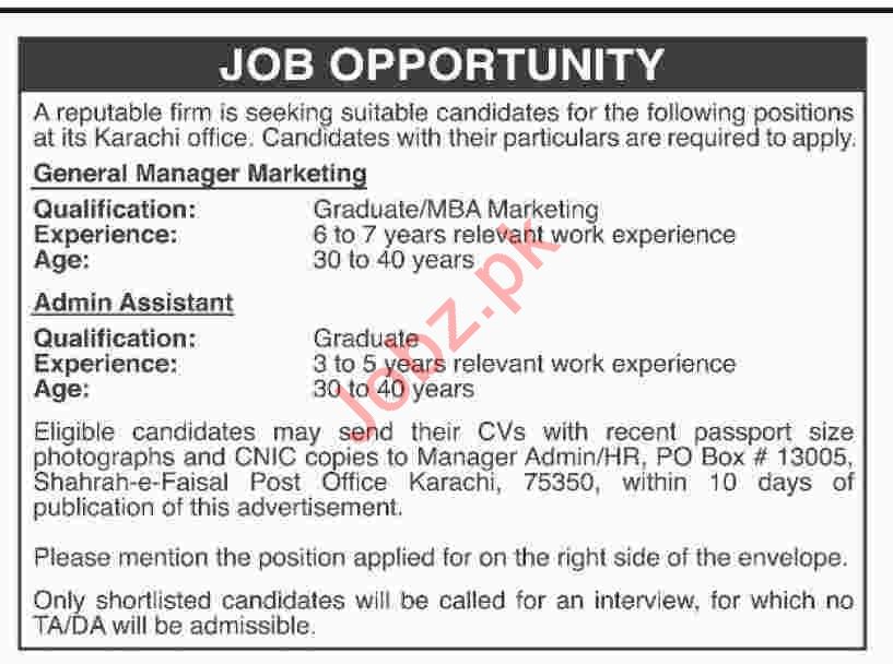 Apply as per details in job advertisement. Login to view further details of how to apply via https://www.jobz.pk online.