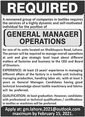 Apply as per details in job advertisement. Login to view further details of how to apply via https://www.jobz.pk online.