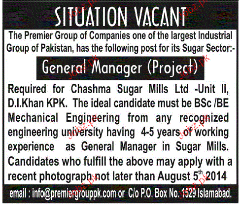 Apply as per details in job advertisement. Login to view further details of how to apply via https://www.jobz.pk online.
