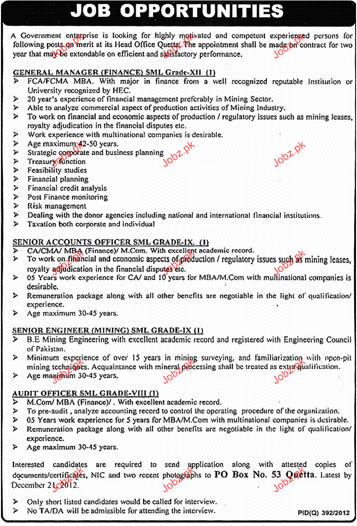 Apply as per details in job advertisement. Login to view further details of how to apply via https://www.jobz.pk online.