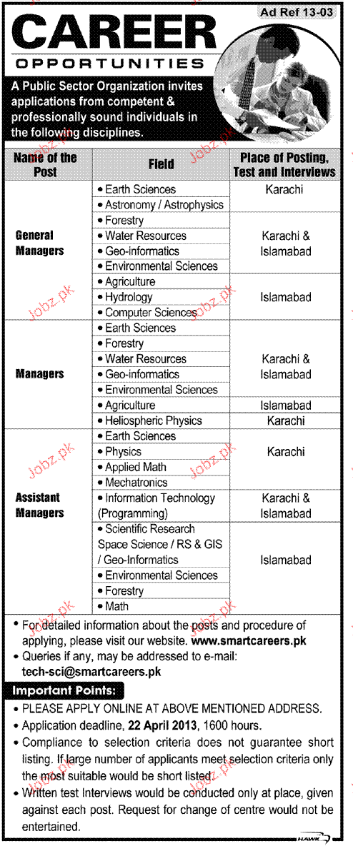 Apply as per details in job advertisement. Login to view further details of how to apply via https://www.jobz.pk online.