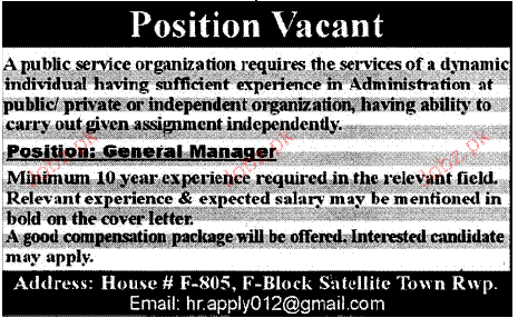 Apply as per details in job advertisement. Login to view further details of how to apply via https://www.jobz.pk online.