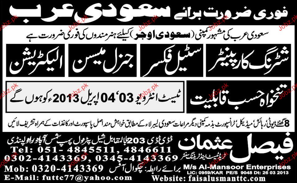 General Mason, Electricians, Steel Fixers Job Opportunity