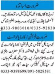 Private Company jobs advertisement dated about 23 March 2022 in daily Mashriq Newspaper invites application for the vacant post of general physician, lady teacher, doctor, nursery teacher, teacher, middle class teacher, physician and cardiologist in Peshawar, peshawar Khyber Pakhtunkhwa KPK Pakistan. Preferred Education is MBBS, Matric, Intermediate, Master, Others and Bachelor etc.