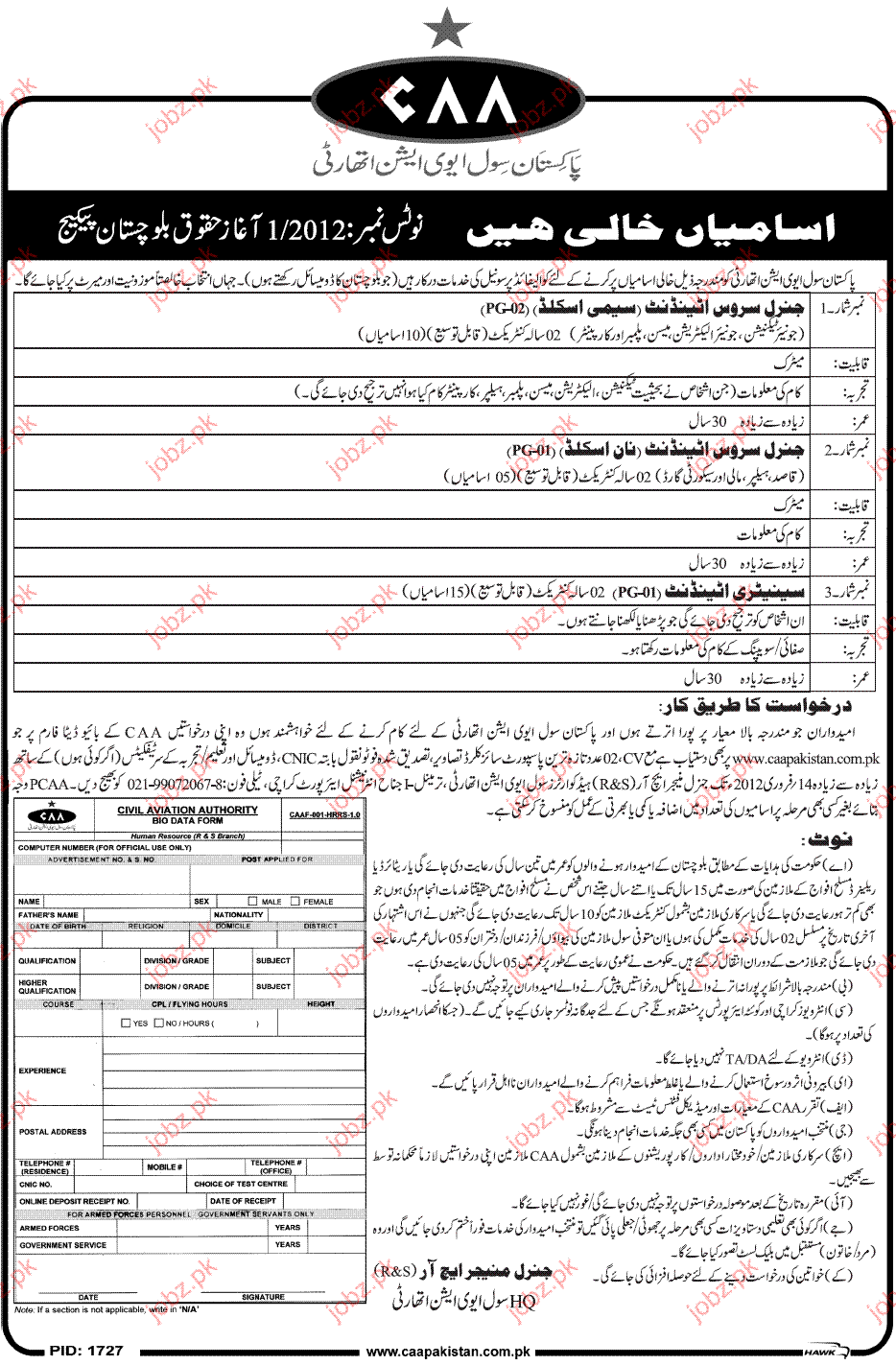 Apply as per details in job advertisement. Login to view further details of how to apply via https://www.jobz.pk online.