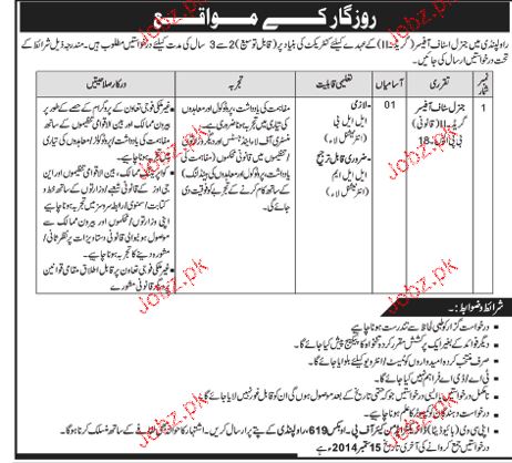 Apply as per details in job advertisement. Login to view further details of how to apply via https://www.jobz.pk online.