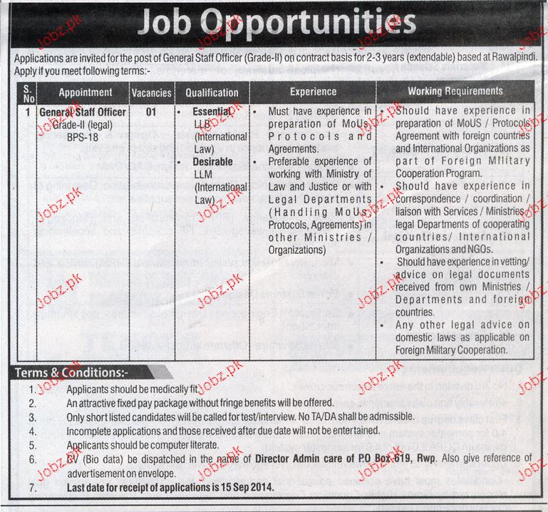 Apply as per details in job advertisement. Login to view further details of how to apply via https://www.jobz.pk online.