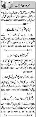 General Staff Wanted For Karachi, Sindh 2017-2018