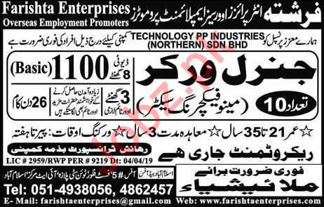 Latest Farishta Enterprises Oversea Employment Promoters Labor Posts Malaysia 2025