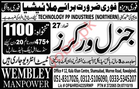 Vacancies in Wembley Manpower Company Advertisement October 2019