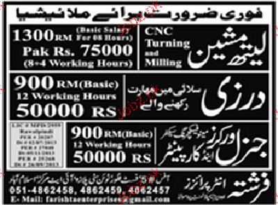 General Workers, Carpenters And Lathe Machines Optr Wanted
