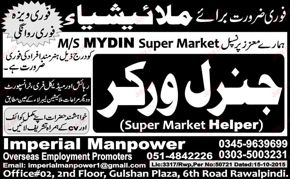 General Workers are required in Malaysia.