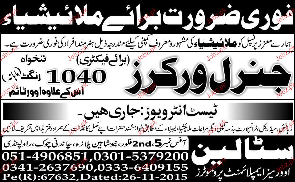 General Workers are required in malaysia.