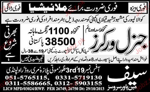 General Workers are required in Malaysia