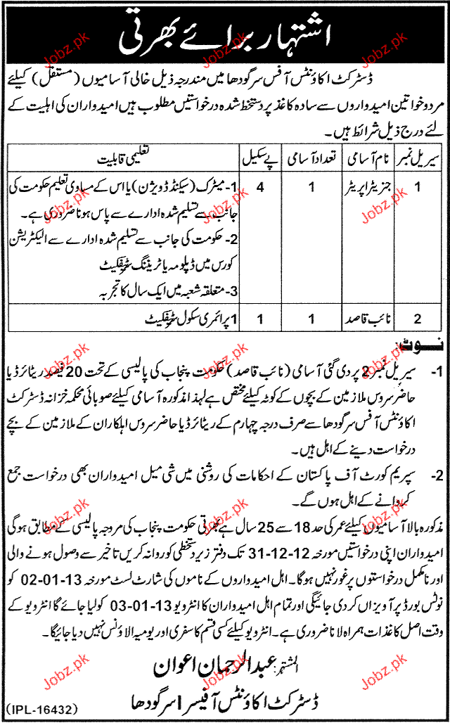 Latest District Government Industrial Posts Sargodha 2025