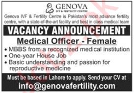 Latest Genova IVF & Fertility Centre Medical Posts Lahore 2025