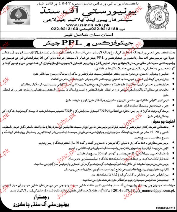 Geo Physics Man PPL Chair Job In University Of Sindh