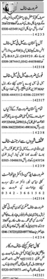 Vacant posts including helper, manager, security guard, geologist, doctor, paramedical staff, office boy, clerk, call center agent, accountant, admin manager, husband wife, public relation officer, call operator, office staff, call computer operator, supervisor, patient care, security supervisor, kitchen helper, driver, professor, female office staff, cook, female manager, computer call operator, chowkidar, guard and pro are announced in Private Company Lahore, lahore Punjab Pakistan as per 1 April 2023 advertisement in daily Dunya Newspaper. MBBS, Intermediate, Middle, Bachelor and Matric etc. educational qualification will be preferred.