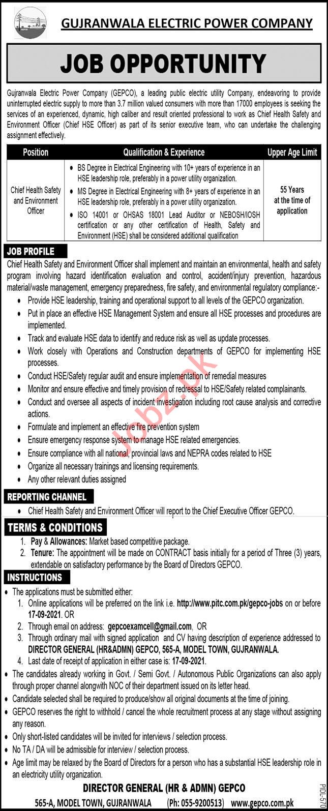 GEPCO Jobs 2021 Chief Health Safety & Environment Officer