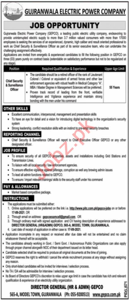 Upcoming Job 2026: GEPCO Jobs 2021 for Chief Security & Surveillance Officer