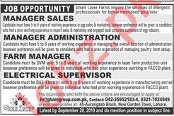 Vacancies in Ghani Group of Companies Advertisement September 2019