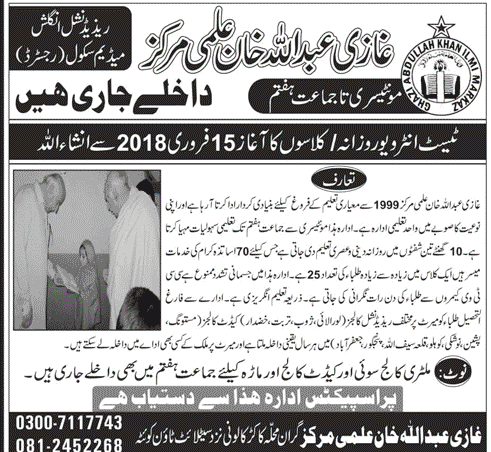 Ghazi Abdullah Khan Ilmi Markaz Admission in