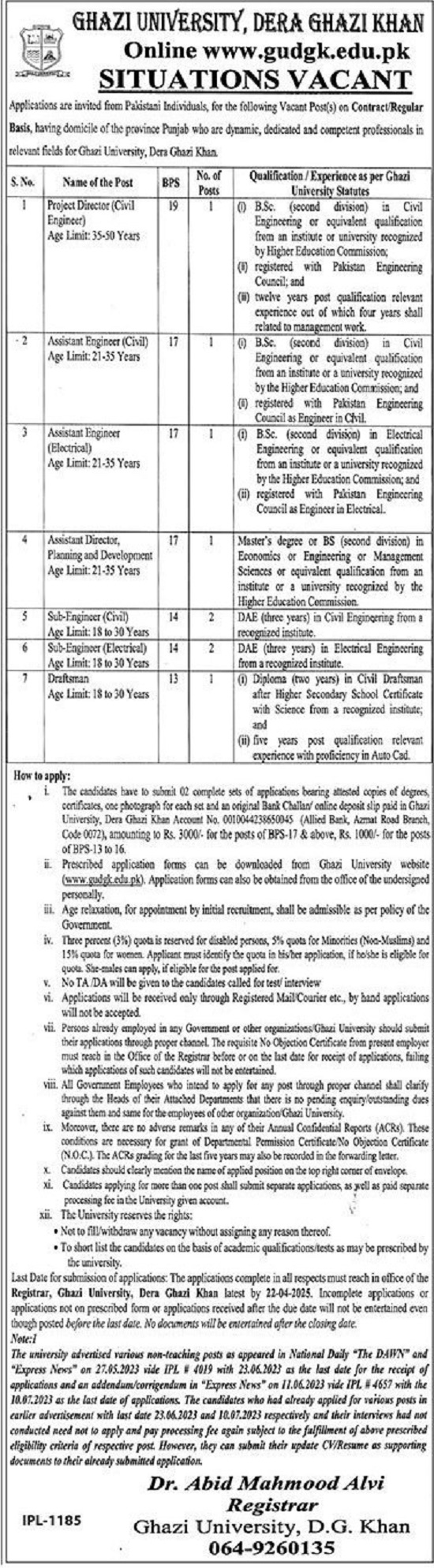 Ghazi University latest Government Education jobs and others can be applied till 22 April 2025 or as per closing date in newspaper ad. Read complete ad online to know how to apply on latest Ghazi University job opportunities.